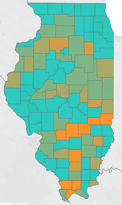 Counties scoring an “F” included Effingham, Cumberland, Bond, Union, Johnson, Pulaski, Jefferson and Clark. Grundy scored a “D.” Here’s the map…