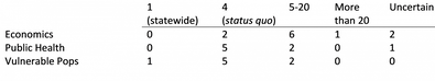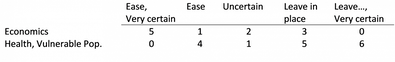 The stark split in question one between the very certain economics experts and the very certain public health experts is jarring.