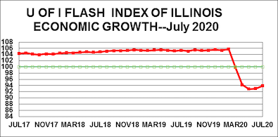“Despite some recovery in the last two months, the index is still below the 100-dividing line between economic growth and decline,” said University of Illinois economist J. Fred Giertz, who compiles the monthly index for the Institute of Government and Public Affairs. “The renewed prevalence of the virus in some areas indicates a slow, uncertain path for the economy unless an effective vaccine emerges.”