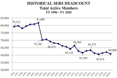Probably should have noted that, in the past, the State tended to hire in large waves every 10 years or so. Part of what you see is just cyclic in nature as people either reach 35 years or service, age 60, or rule of 85. 2011 - 2013 might have been one of those cyclic dips from the hiring in the late 70’s and early 80’s.