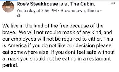 Roe’s Steakhouse is just down the road a bit from Effingham County where Covid numbers are rising. Don’t think I want to go anywhere near that area right now.