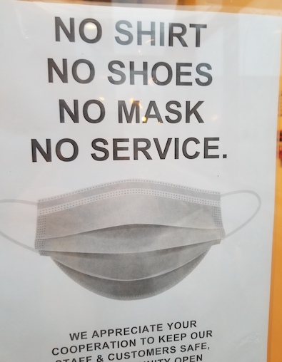 …Adding… We went to the Sangamo Club for dinner last night (outside, of course) and I think the sign on its front door puts the whole mask issue into proper context…
