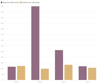 As the number of police stops increase and police continue to stop Black drivers at a far greater rate, our data analysis shows they’re actually citing Black drivers less often than white drivers. That means while Black drivers are more likely to be pulled over, they’re less likely to be cited for wrong-doing.