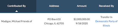 Much of that money is likely for direct mail expenses since the state party receives a significant postage discount. It’s one of the biggest reasons why Madigan retains control of the party. He saves a ton of money on mail.