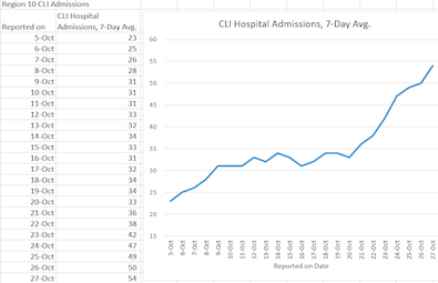 In suburban Cook, daily hospital admissions for coronavirus-like illness increased by 58 percent in a week. That is not a trend anyone wants.