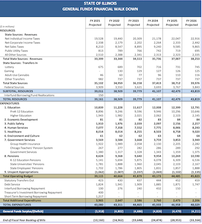 Is GOMB historically conservative? Actual 2019 personal income tax revenue was $22.6Bn. The above doesn’t show us getting back to that until 2026. I find this hard to believe. Further, corporate taxes were $3.0Bn the above shows only $2.7Bn in 2026 with sales taxes not fully removing until 2024. The state in total generated $43.7Bn in 2019. GOMB doesn’t expect us to get back to that until 2026? There are new sources of revenue now that we didn’t have in 2019. I find the revenue numbers hard to believe.