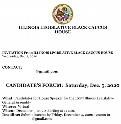 Short of Rep. West, what I have read from the ILBCH is that they are in Speaker Madigan’s corner. I haven’t put on my tin foil hat yet this afternoon but it wouldn’t surprise me if Madigan had a hand in this candidate forum. At least he thinks it will help him. The ILBCH is saying “here’s our candidate” what do you anti-Madigan folks have? Does Rep. Kifowit show up? Heck does Leader Durkin show-up? He is a candidate for Speaker. Anyway, this is certainly interesting.