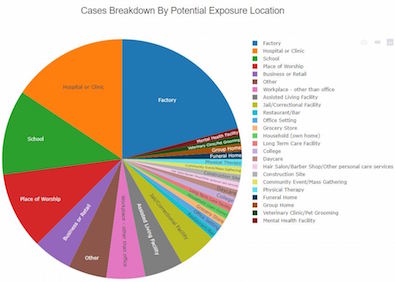 Factories top the list. Rep. Chris Welch just disclosed his Covid exposure was traced back to someone working at a Ford plant.