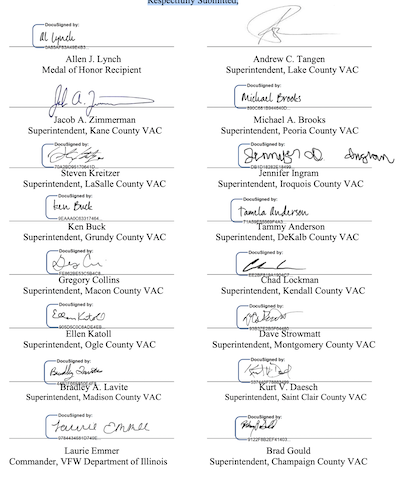 CC: LINDA CHAPA LAVIA, DIRECTOR, ILLINOIS DEPT. OF VETERANS AFFAIRSIt is with deep regret, that we, the undersigned, must demand the immediate dismissal or resignation of Director Linda Chapa LaVia and Chief of Staff Anthony Kolbeck for their misfeasance and nonfeasance concerning the Coronavirus Disease 2019 Outbreak at the various Illinois Department of Veterans Affairs Veterans Homes. As the leading advocates for veterans, in the 10th most veteran populous state, we have simply lost confidence in their ability lead. We are concerned about actions that took place under their leadership as well as actions that did not take place under their leadership. These include, but are not limited to: