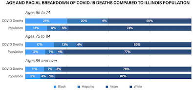 No one is discriminating on the basis of skin color. (Except, perhaps, the virus.) The next phase will include “ALL Illinois residents age 65 years and older and “frontline essential workers”.