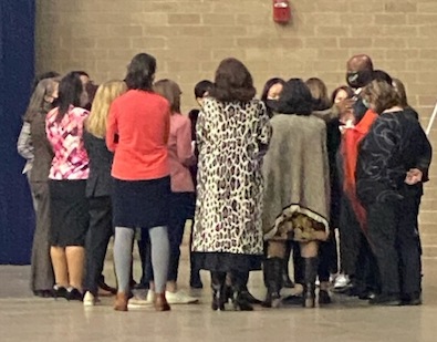 …Adding… Well, this is an interesting pic. Rep. Chris Welch meets with a large number of House Democratic women at the BOS Center…