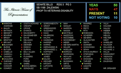 By my late-night eyes, 11 House Democrats voted “Present” or “No,” and another 8, including Speaker Madigan, didn’t vote. Several members of the Black Caucus did not vote for the bill.