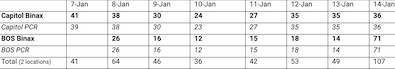 There are 177 state legislators (although a few couldn’t make it to town). An unknown (to the public) number of staff members were also at both venues. Everyone who took a rapid test also got a PCR test, according to the governor’s office, which is why there are two rows. Click the pic for a larger image…