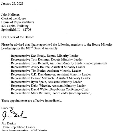 “I am honored to have been selected to join the House Republican Leadership Team. I believe Leader Durkin has shown he is committed to not just the future of our party but also our state with his announcement today. I look forward to using my influence to advocate for a broad energy package which will make Illinois a leader in competitive and reliable energy for generations to come. If we choose to lead together, both Democrats and Republicans, there is no challenge we cannot face, no obstacle we cannot overcome if we are united for the common good. I have shown to be effective working across the aisle, and I will continue to do that when I believe it benefits our area and our state.”