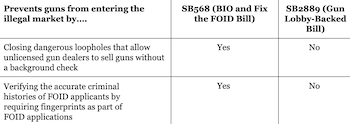 COMPARISON: SB568/HB3245 (The Block Illegal Ownership and Fix the FOID Bill) and SB2889/HB745 (The Gun Lobby-Backed Bill)
