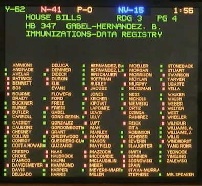 Rep. Gabel replied that the records are “only for the Department of Health” and are not disseminated with identifying data. “They’re used in the aggregate to be able to check immunization rates across the state to identify areas that have low immunizations and to target services for those areas.”