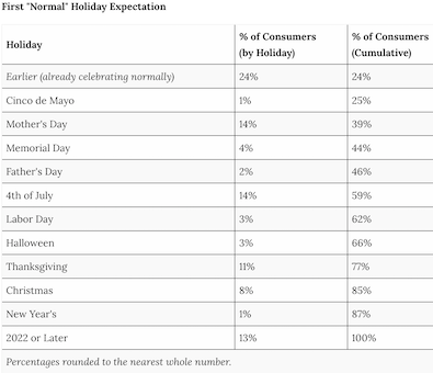 * The Question: Using the list above, what is the first holiday that you expect will be (or already was) “normal” for you and yours? Explain. Also, let us know your vaccination status.