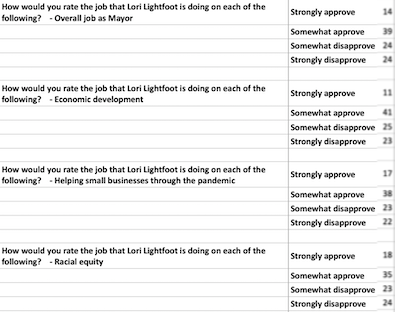 Lightfoot did best among respondents age 65 or older; 64% of them approved of the job she’s done. And 70% of Black respondents approved of her performance.