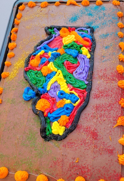 * I went to a party after session yesterday that was hosted by some Statehouse types and Rep. Kelly Cassidy brought a sheet cake…