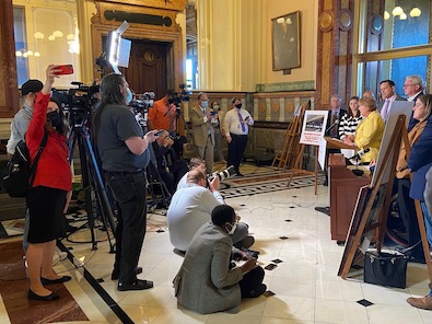 “I’d like to begin by saying that it’s good to see, with the state finally opened back up, many members of the press have availed themselves of the several wonderful buffets around the capital city.”