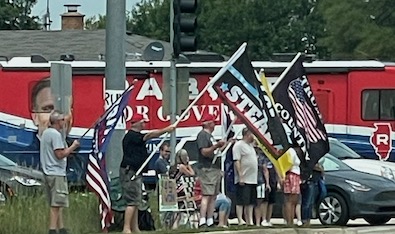 I stopped by - you couldn’t get into the college’s lot because of security but there were a lot of people along the road, flags-a-flying and some shouting matches going on.