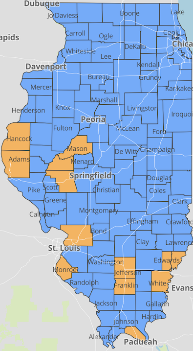 * Meanwhile, a dozen counties are in the warning zone…