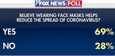 In addition, a mere 17 percent of respondents said they believed that neither face masks nor the coronavirus vaccine are effective.