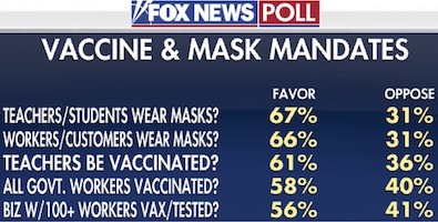 Whenever I look at polling on COVID related issues it always amazes me that many in the GOP think it is a winning strategy to side with * 30% * of the electorate.