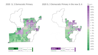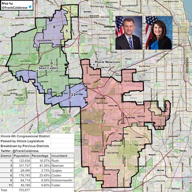 Interesting that they put most of Beverly back in the district when they were moved over to Rush’s district. A lot of the people who testified at the committee hearings were Newman supporters. They appeased them then re-mappped her out. But I am not sure about her advantage. Lots of labor folks in those SW suburbs that I would think will back Casten.