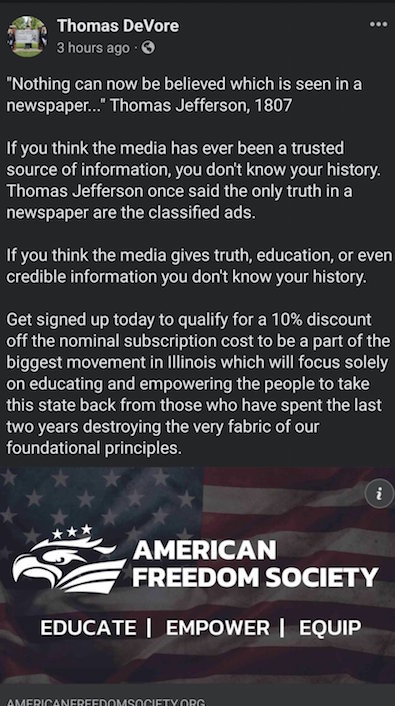 Is the “American Freedom Society” his latest grift? Never heard of it.