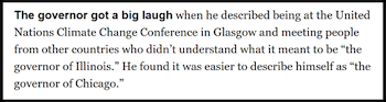 = When I moved out of Chicago to Springfield, I would still say I was from there or a few hours from there when I traveled abroad. I get it, but maybe the governor shouldn’t say it out loud. Too late now, though. =