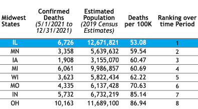 I believe if you looked at death rates since May 1 by county in Illinois you would see similar shocking results in the less vaccinated counties but it’s hard to find those comparisons.