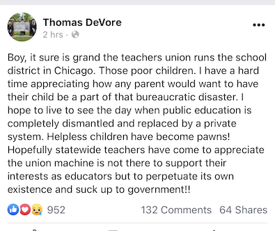 2. Devore hates equality- Public schools are the final bastion of equal opportunity in this country. You can argue about how good some schools are and how we finance them, but everyday we accept everyone who shows up at our doors (so long as they mask). Rich or poor, regardless of religion or race or politics. We take them all. Every. Single. Day.