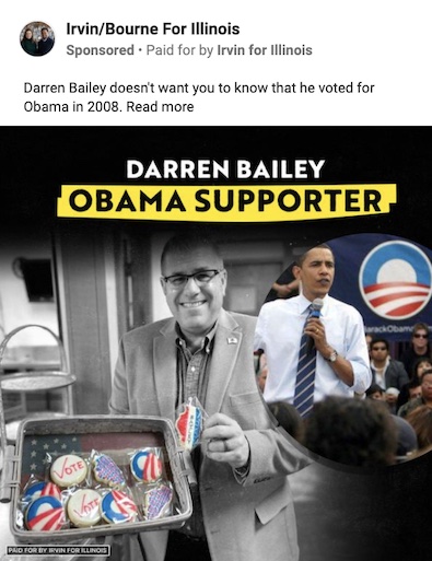 * Chicago Tribune, January 15 2022While Obama was campaigning against real Republicans like Richard Irvin, Bailey was hoping you never learned his Obama-sized secret See for yourself! Darren even posed with his Obama cookies!