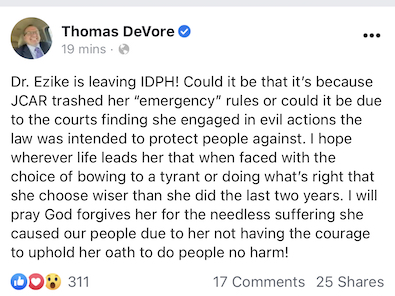 Wasn’t one of the pillars of Devores claim that the governor was acting unilaterally, without input or discussion with IDPH?