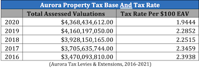 Since 2016, Aurora’s Property Tax Base Has Grown From $3,470,093,810 To $4,368,434,612, An Increase Of More Than 25 Percent. (Aurora Tax Levies & Extensions, 2016-2021)