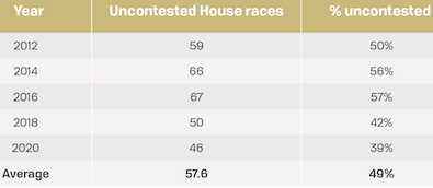 The idea that uncontested races are a problem works on a kind of weird assumption - that if people ran there would be a competitive race. Uncontested races indicate one party is so favored it isn’t worth the effort.