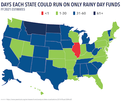 In order to build a “rainy day fund” the state which was forced to pay almost all of it’s bills late when it was managed by the Rauner administration who did not ever successfully pass a budget into law whose agency directors did not ask for cuts to their budgets even when there were not funds available would need to deliberately pay some bills late. Having an operating cushion is nice but we’ve only just recovered from operational spending that was months late. To build a 60 day cushion would mean needing to find 60 days worth of reserve funding somewhere and in our case this would mean paying things late and hoping we eventually got caught up again, or creating a budget with almost 2 months worth of extra revenues in it to build the fund up and then just let it sit there instead of paying doubt our debts.