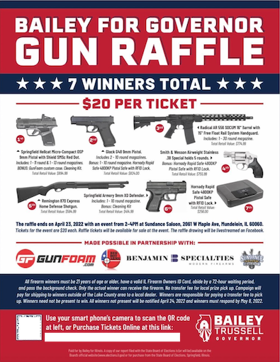Any reasonable person, but especially a candidate for the highest office in the state, should not be raffling off guns while voting against common-sense gun legislation like background checks to protect Illinois families from senseless gun violence. This is just another example of how out of touch and extreme Darren Bailey’s conservative views are, which will not bode well for his chances at winning this election.