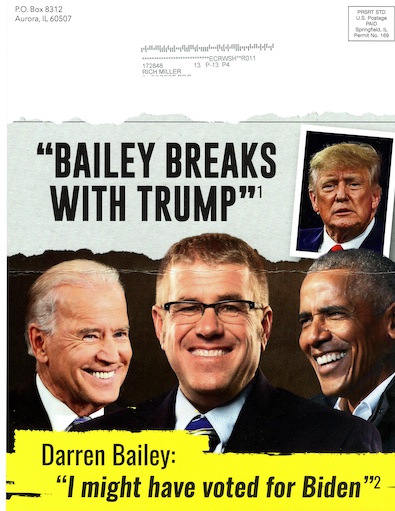 === Notice there’s no disclaimer saying who it’s from. The Irvin campaign sent a letter to the Illinois State Board of Elections blaming the omission on a vendor error. ===