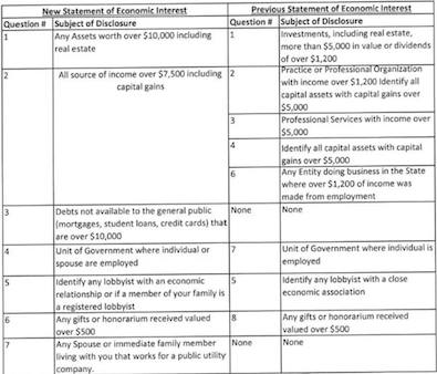 Overall we are in favor of more transparency and support the legislature’s moves in that direction. Some officials are not going to like it — that’s inevitable with just about any serious ethics reform. These forms are well in line with what other state legislatures require and are by no means the most detailed out there. And there are some ways in which the new forms require less information than the old forms, by raising the dollar thresholds that trigger reporting, for example.