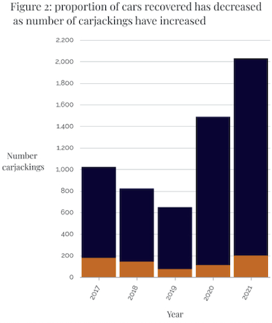 If youth joyrides have, in fact, been driving the carjacking spike, then one would expect most cars to be recovered as the point of a joyride is to drive the car and not sell it.