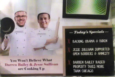 We’ve begun to wallpaper our newsroom with the mailers we get for Illinois Governor and the Miller-Davis race.