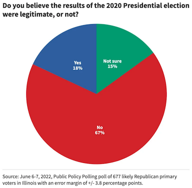 Sixty seven percent of Republican voters believe in the big lie despite the fact that the facts do not support it. What it underscores is that for these voters facts are irrelevant when they run counter to your wishes. That’s where the GOP finds itself today.