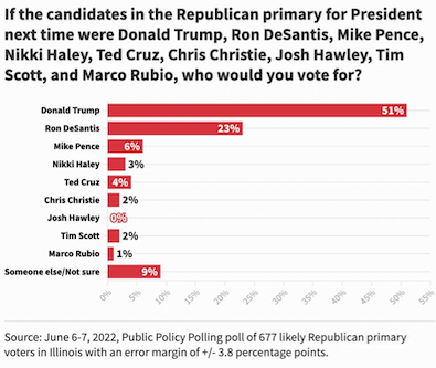 Interesting data points. Thanks for sharing. It is important to remind ourselves that this is a sample of “likely Republican voters, in Illinois.” Those are the two important criteria to keep in mind. Because they are likely Republican voters, they are also older, and disproportionately white Anglo.