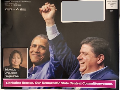 * Another beneficiary of Pritzker cash is Rep. Natalie Manley, who is running for central committee against DPI incumbent Christine Benson. Benson was a Robin Kelly supporter during the fight over party chair and is expected to vote for her again.