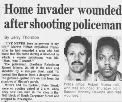 Mizera, a former CPD officer, was shot and injured by Kensley Hawkins in 1980. Hawkins later would be convicted of the murder of a 65-year-old man and was sentenced to almost 100 years in prison.