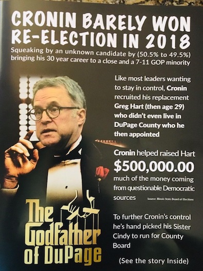 I get the Fenwick reference to Quinn in the sense that Cronin and Hart went there but I don’t see that losing you a ton of votes in DuPage. Curious where the mailer was directed in the county