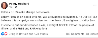 I spoke with Jimmy Lee… Matt Dubiel and will be speaking with Peggy this evening. I will go where the data takes me. On the surface it appears to be a rigged US Senate race. If the data proves Peggy or someone else won, than the Will of the People of Illinois should