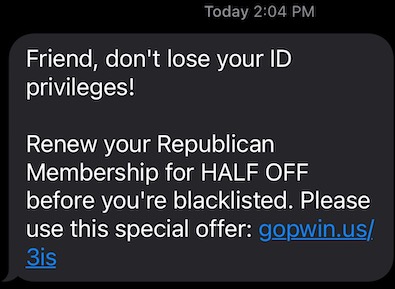 I suppose some fundraising technique genius convinced them that abusive threats are effective. For the MAGA-Trump party, threatening people for non-compliance is so on brand.